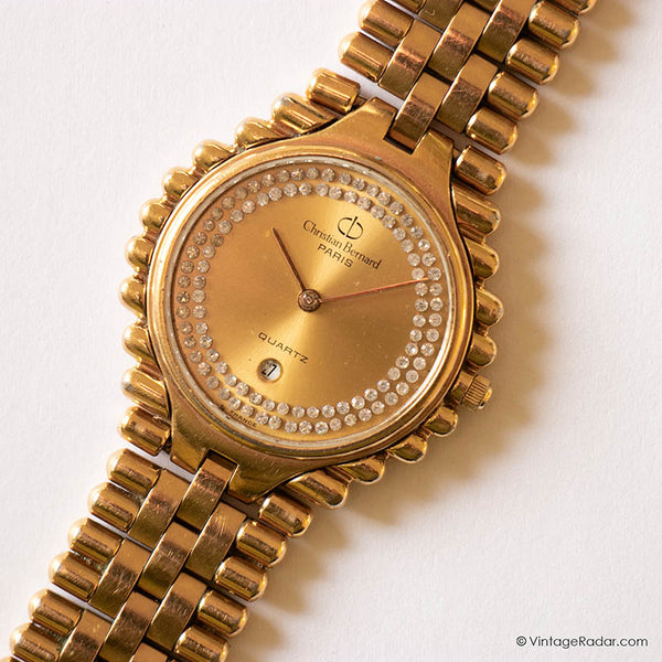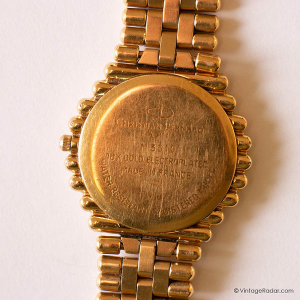 This is a luxurious vintage Christian Bernard Paris watch for ladies, 18K gold electroplated and made in France. With an elegant design in tones of gold, the watch will certainly get noticed on the wrist. It's powered by a precise quartz movement, keeping perfect time. And it's an ideal fit for small wrist sizes.